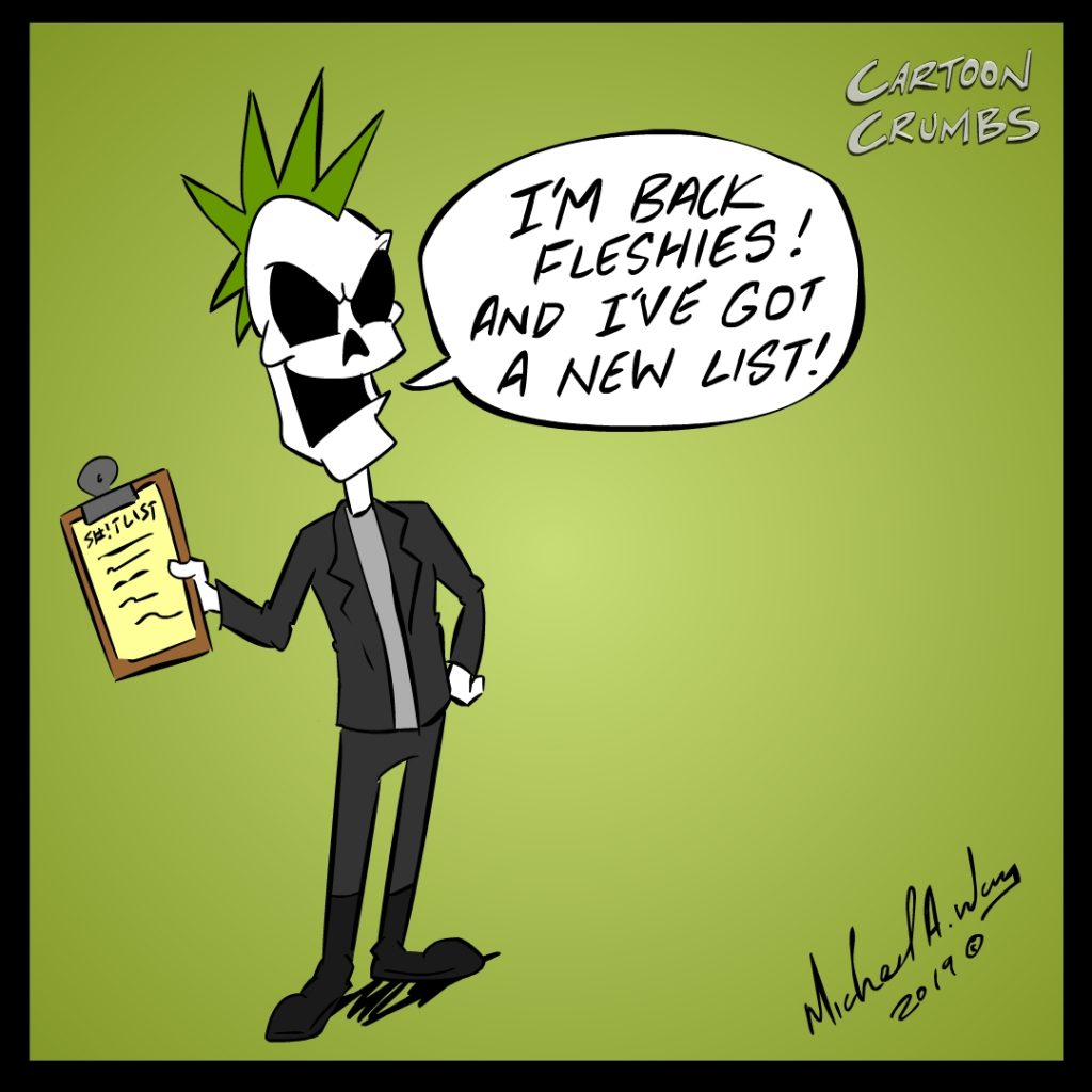 Low Life Dad returns to his couch after Rump’s kicked him out of the Cartoon Crumbs headquarters. New toons added to this feed after they have been created to keep the story flowing.