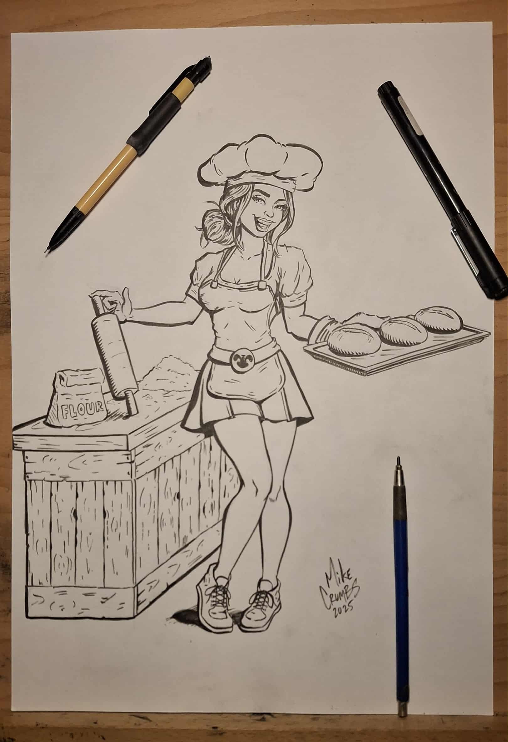 Attempting this years Pinuptober challenge with Sally getting her cosplay on throughout the month for the different prompts. First up is Baker done traditionally.